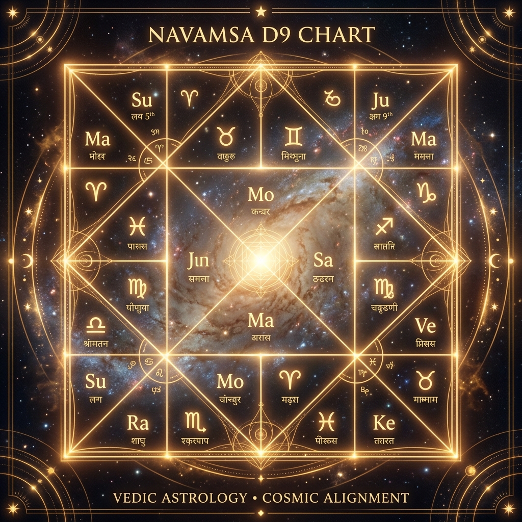 The D1 chart is the facade; the D9 chart is the soul of the marriage. A couple might have a weak Moon matching algorithm in D1, but if you look at their D9 charts and see that both have exalted 7th lords, or an unafflicted Venus sitting in the 9th house of the Navamsa... the marriage will ultimately manifest as an incredibly stable, devoted, and spiritually elevated union. The early years might be rocky, but the D9 dictates that the second half of life will be pure marital bliss.